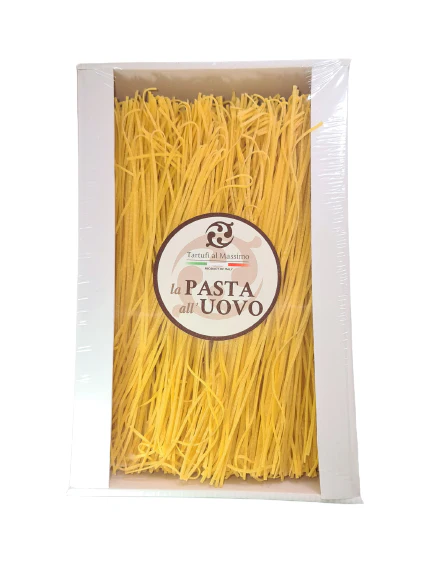 The pasta has a cut width of 2/3 mm prepared with lots of eggs that make it as yellow as the sun.