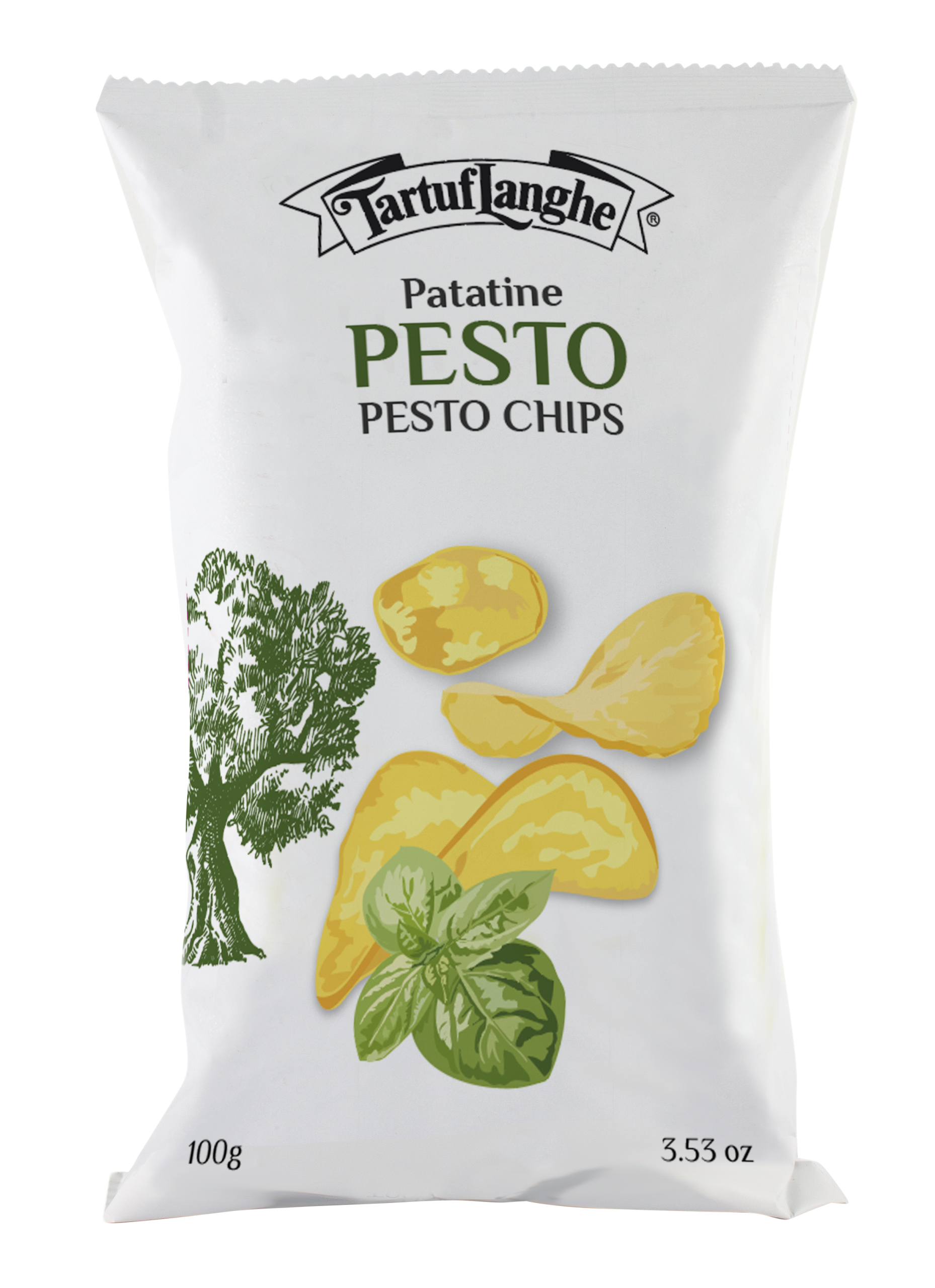 Ingredients: Potatoes, sunflower oil, olive oil, freeze-dried pesto (Basil Genovese DOP 49%, Parmigiano Reggiano DOP cheese, pine nuts 9%, Fiore Sardo DOP cheese, salt, Vessalico garlic) 2.3% (equal to 5.4% fresh pesto), potato maltodextrin, salt, spinach powder, natural flavor.